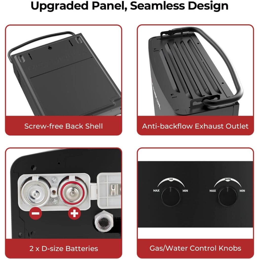 • Energy & Cost Saving: Portable hot water heater with maximum power output 34,000btu/hour, provides 1.32 GPM hot water on demand, no need to preheat,saving up to 50% on water heating costs.